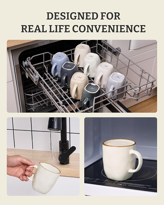 • 【Coffee Mugs Set of 4】Each mug holds up to 13oz of your favorite beverage. Great for Latte, Hot Tea, Cappuccino, Mocha, Cocoa, Milk, Hot Chocolate, smoothie,and more. Suitable for families and gatherings.