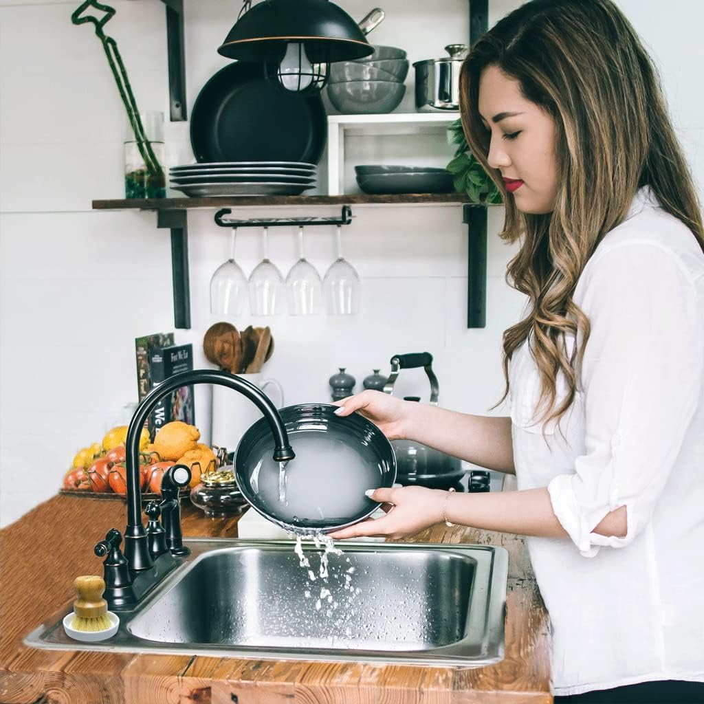 • Ergonomic Bamboo Handle - The SUPERWASH PLUS dishwashing brush is crafted from natural bamboo and has a good texture. Featuring a sleek groove in the middle part, the round handle fits nicely in your hand, very easy to hold and apply pressure for tough scrubbing. It looks much nicer than the plastic brush.They are very sturdy and easy to use, deal for cleaning cast iron pots, pans and sinks.