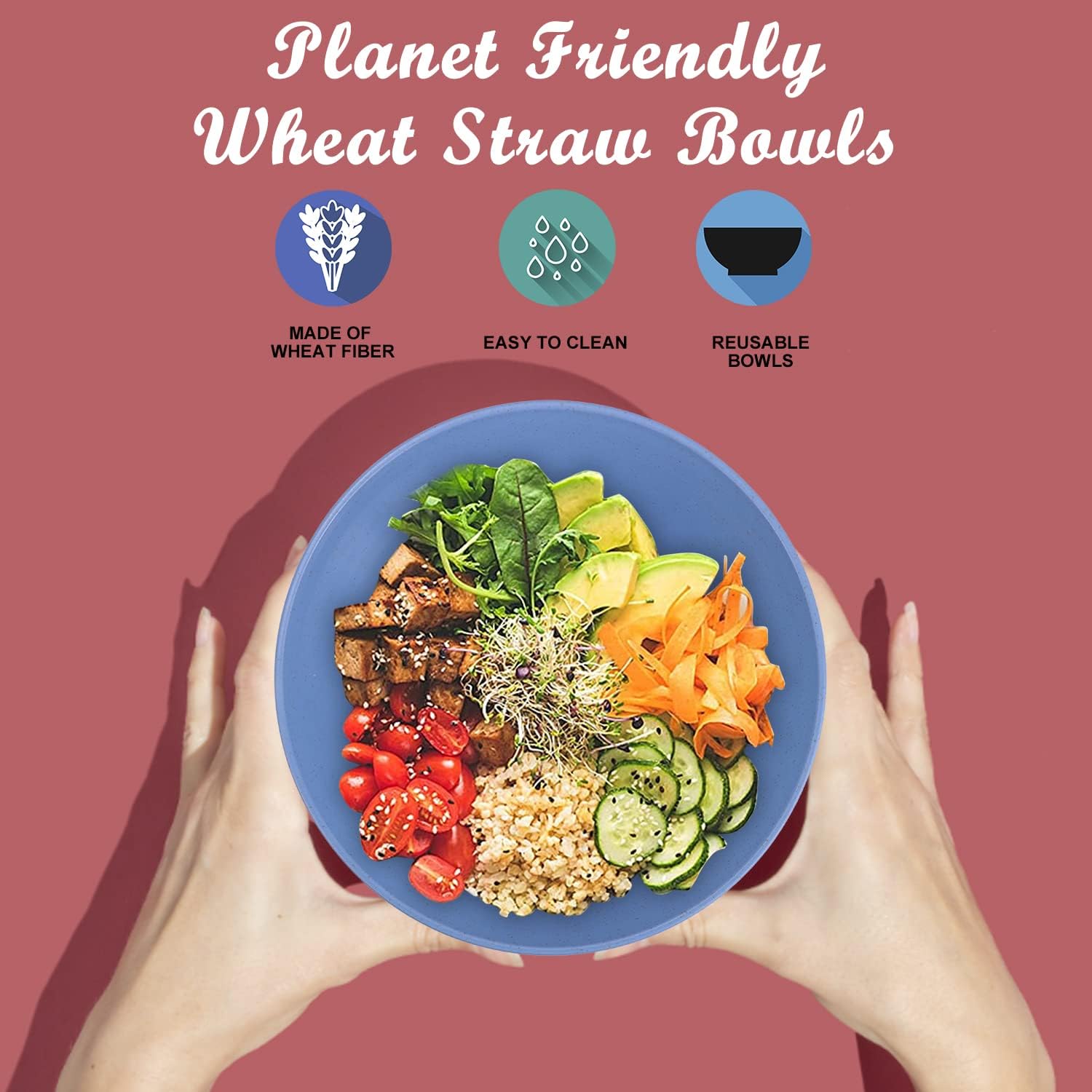 • 🌾【More Thick & Large Capacity】The wheat straw bowls are designed with thicker and smooth round edges which gives you a good touch and prevent deformation.Our wheat straw bowls set has ideal shape and antiskid stripe which avoid spilling your food. Additionally, it is perfect for cereal, salad, fruit, rice, noodle and so on.