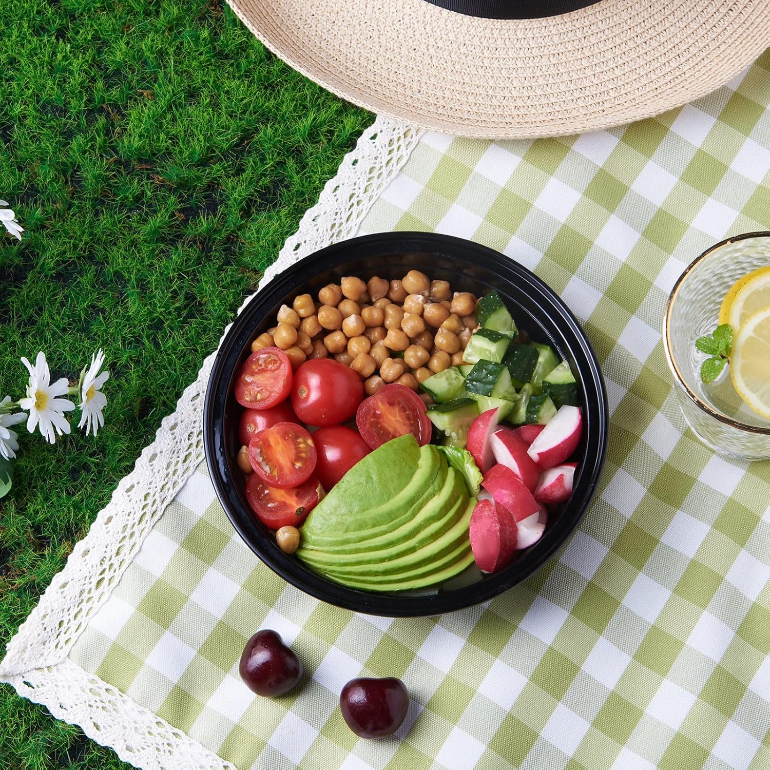 • MEAL-PREP MADE EASY: Black Salad bowls Deli Food Storage Containers with Clear Airtight Lids Leak Resistant, stack neatly, and feature a microwaveable bottom to make meal planning a breeze