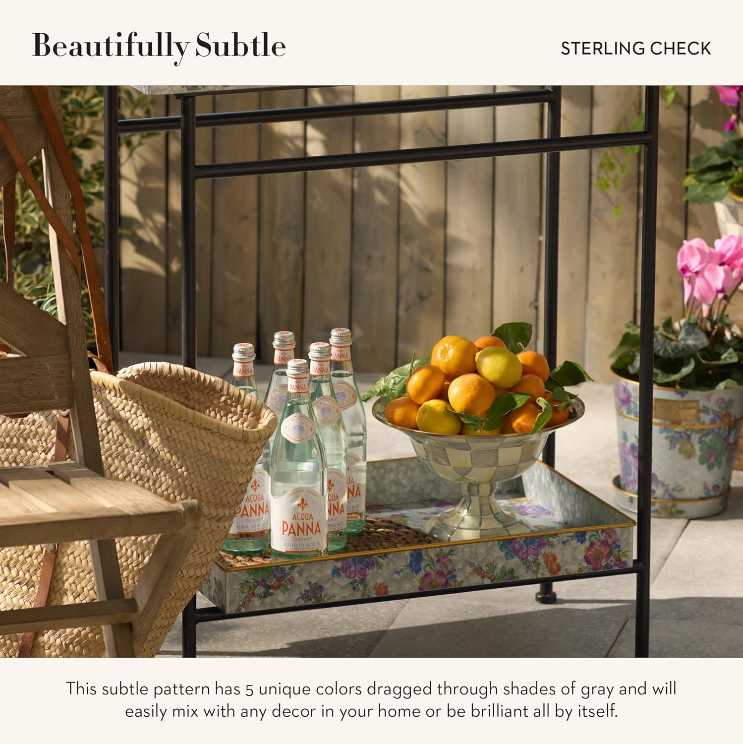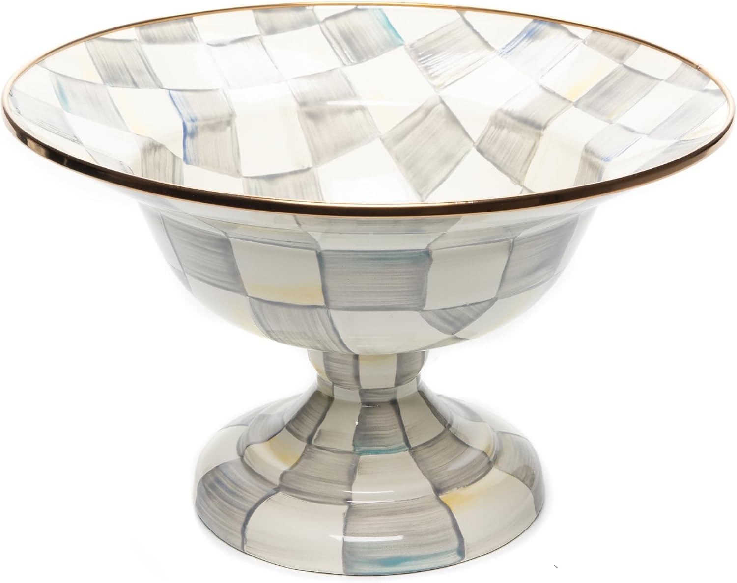 MACKENZIE-CHILDS Enamel Compote, Cute Enamel Pedestal Serving Dish or Decorative Bowl, Large, Gray-and-White Sterling Check