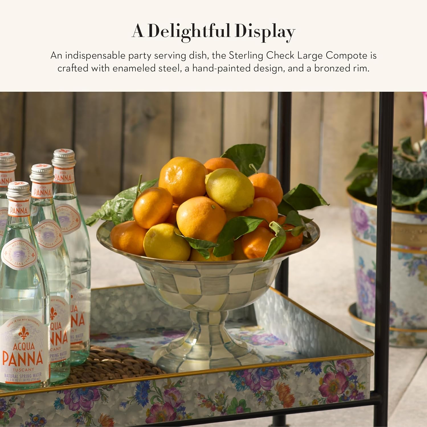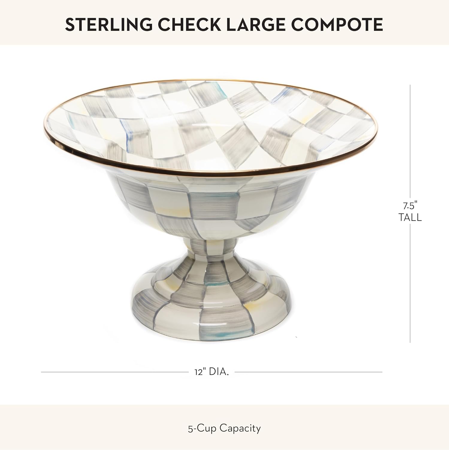 • ELEGANT SERVING ESSENTIAL: Great for serving and entertaining, the Sterling Check Enamel Compote is an elegant pedestal bowl for any dining table. It features hand-painted gray-and-white checks over a steel underbody and has a stainless-steel rim.