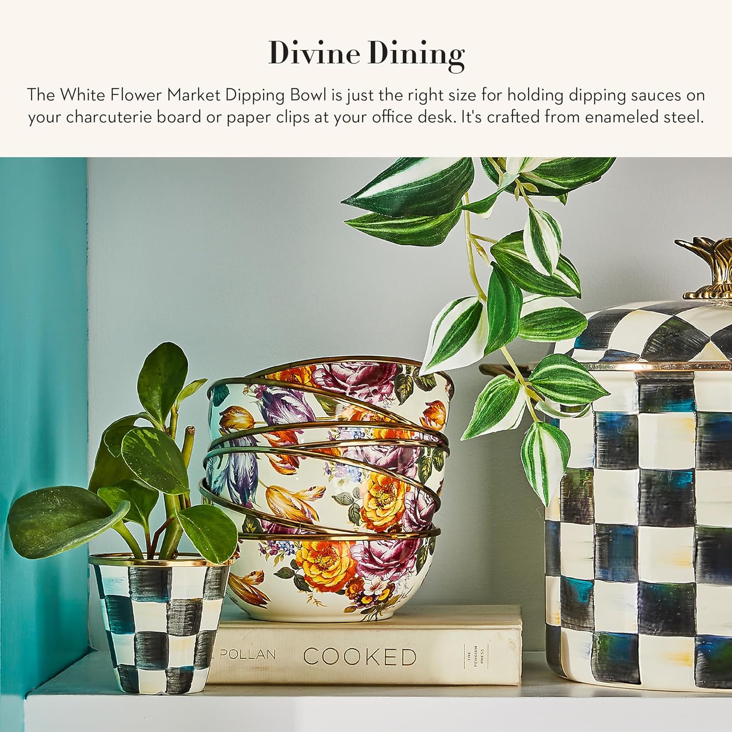 MACKENZIE-CHILDS Enamel Dipping Bowl, Small Serving Bowl for Entertaining, White Flower Market