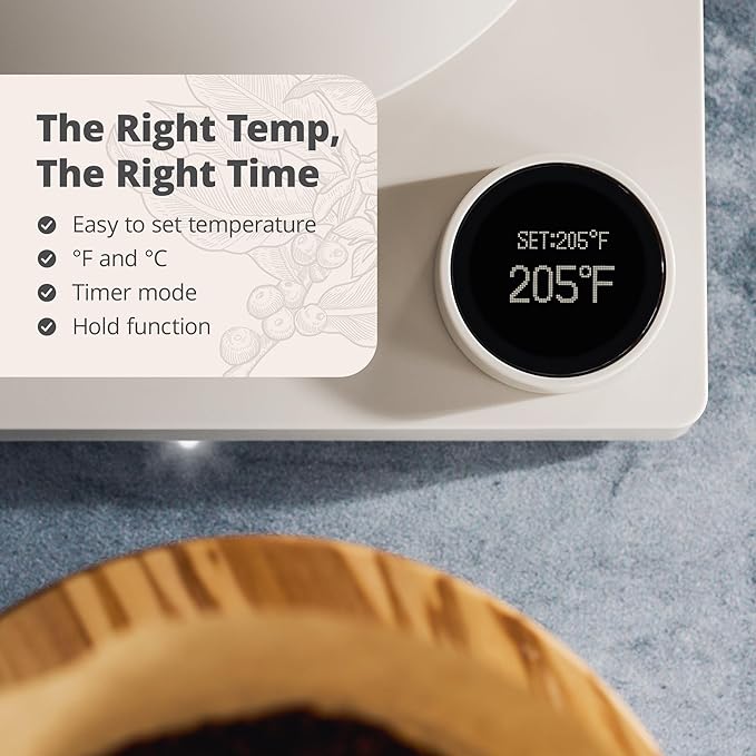 • 𝗘𝗮𝘀𝘆 𝗧𝗲𝗺𝗽𝗲𝗿𝗮𝘁𝘂𝗿𝗲 𝗖𝗼𝗻𝘁𝗿𝗼𝗹: Featuring a digital display for precise temperature settings from 104°F to 212°F, with an extended temperature-hold function for up to 60 minutes for convenience