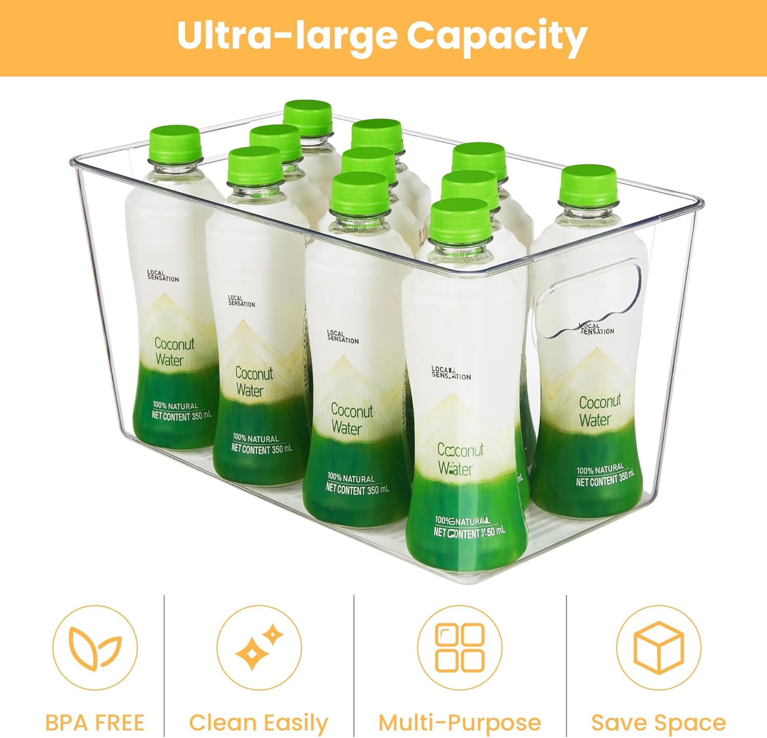 YIHONG Clear Plastic Storage Bins, 4 Pack Pantry Organizer Bins with Handle for Kitchen, Freezer,Cabinet,Closet Organization and Storage(XL)