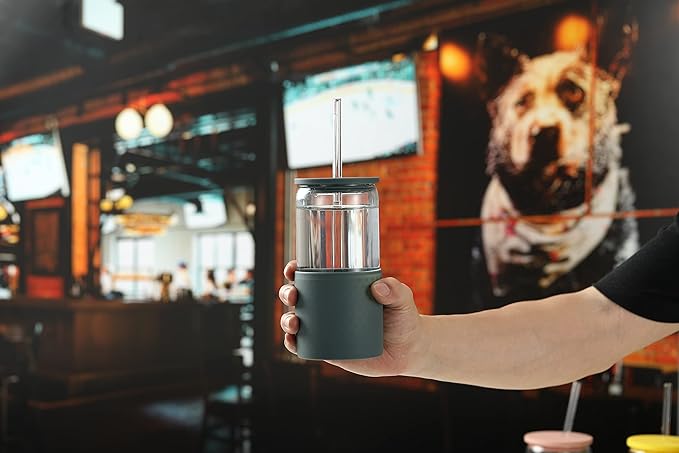 • Change the style of glass cups as you wish, you can match the colors of the cup lid and sleeve, such as a pink sleeve with a white lid. This reusable jar-shaped glass cup is perfect for iced coffee, iced tea, juices, sodas, milkshakes, jams, cocktails, beer, smoothies, bubble teas, and more.