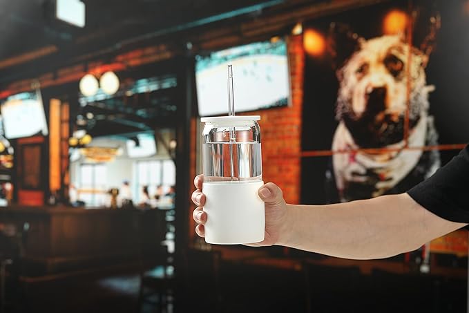 • The unique silicone sleeve and lid design provides a strong protection for the glass cup. if the glass cup is accidentally turned over on the desktop, the chance of breaking is very small, and the sealed lid ensures that the liquid will not overflow.
