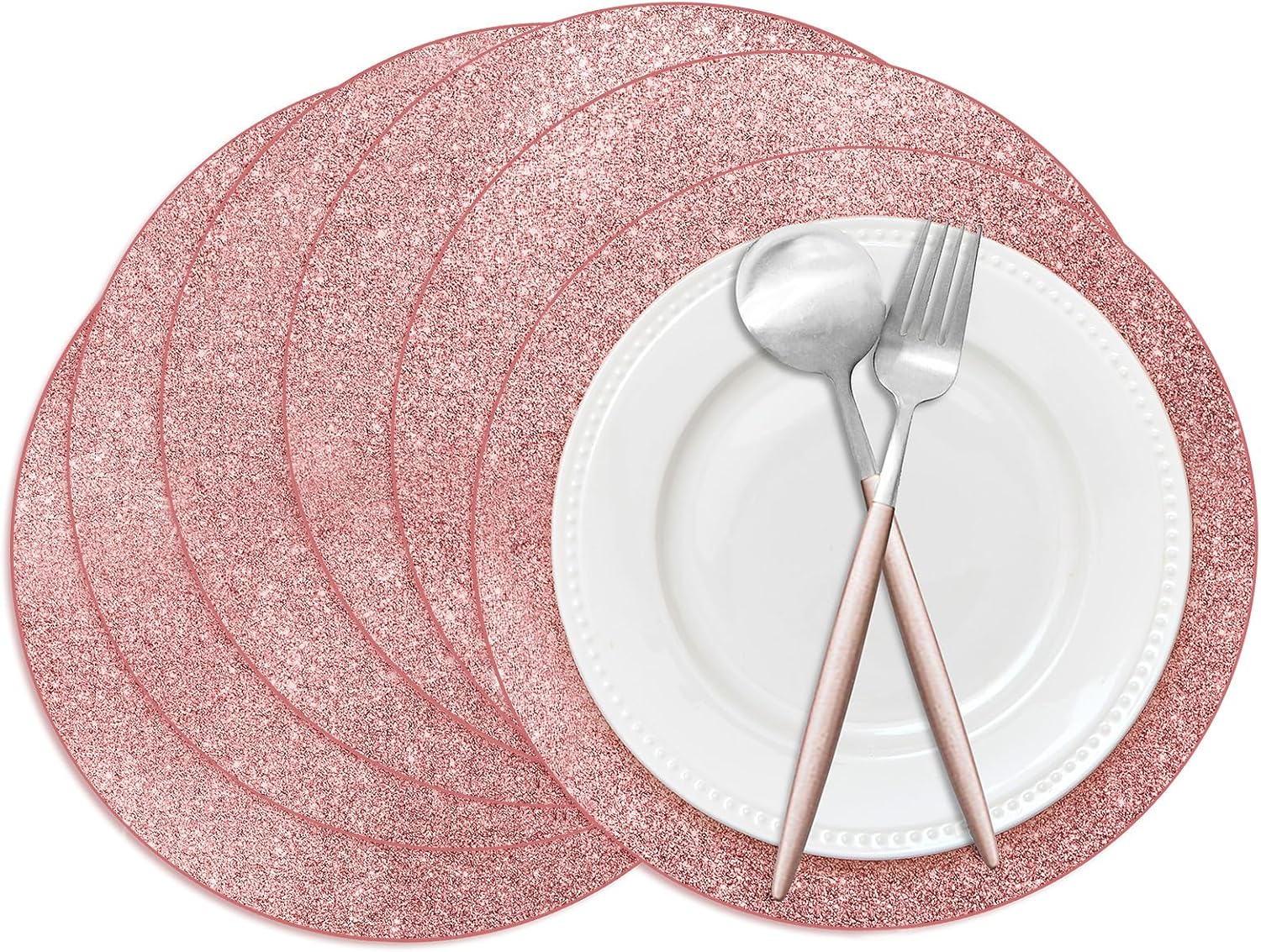 • Glitter surface: our rose gold placemats are decorated with many glitters, which is shining and full of exquisite feeling, easy to match event styles and make more eye-catching, will add a lively touch to your dining table