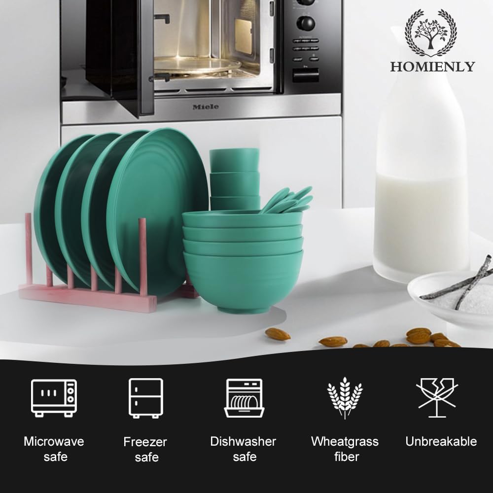Wheat Straw Dinnerware Sets, Homienly 20pcs Unbreakable Microwave Dishwasher Safe Tableware Lightweight Bowls, Cups, Plates Set Reusable Dinner Plates Bowls set (Green)