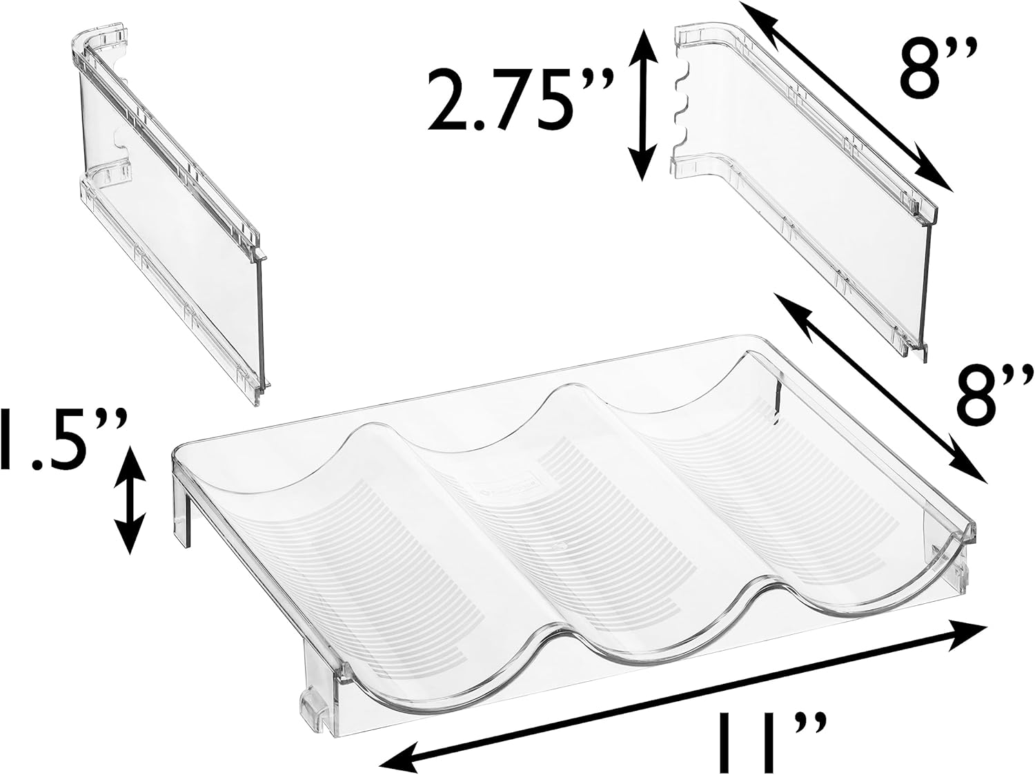 • IDEAL STORAGE CHOICE - Each rack holds up to 3 empty/reusable water bottles, water bottle containers, bottled beverages, sports drinks for an organized kitchen, or wine bottles. Keep counters, islands, tables, pantry, or cupboard clutter-free with this convenient organizer. Bottles are stored horizontally in individual compartments so they are always easy to grab. Stack these units to create vertical storage to help maximize your space. Place in the fridge for perfectly chilled drinks.