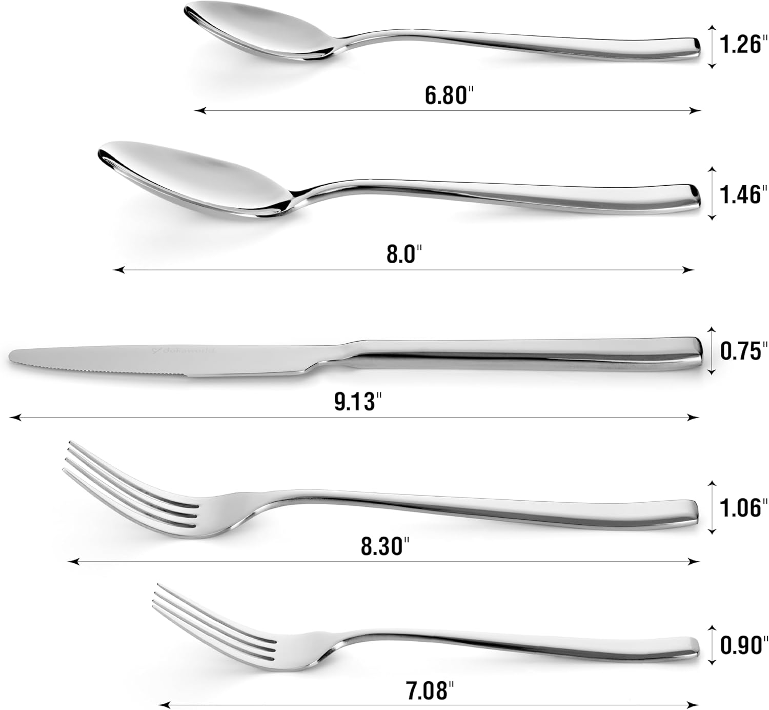 • AFFORDABLE LUXURY: silverware crafted to turn daily meals into exquisite dining experiences. Enjoy the EXCLUSIVE design and outstanding quality of our stainless steel flatware