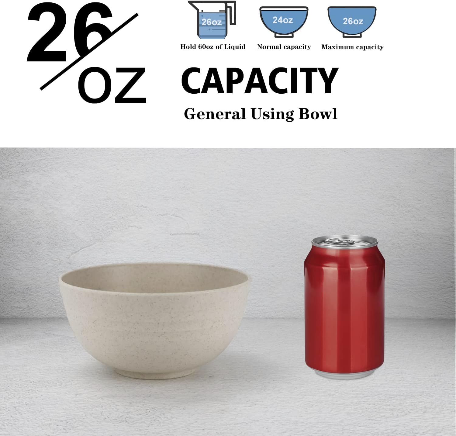 • γ€π™€π™‘π™–π™—π™€π™§π™–π™©π™š π˜Ώπ™šπ™¨π™žπ™œπ™£γ€‘Enjoy a more comfortable dining experience with our wheat straw bowls. Featuring thicker and smoother round edges, they feel great to hold and use. With a generous 26oz capacity, they're perfect for everyday use at home, work or school.