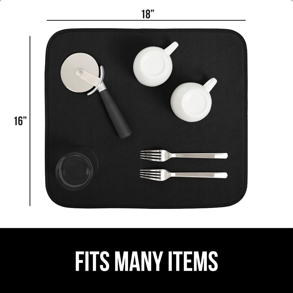 GORILLA GRIP Ultra Water Absorbent Microfiber Dish Drying Mat, Quick Dry Thick Mesh, Slip Resistant Pad for Sink Dishes or Under Rack, Kitchen Counter Accessories, 16x18, Machine Wash Mats, Black