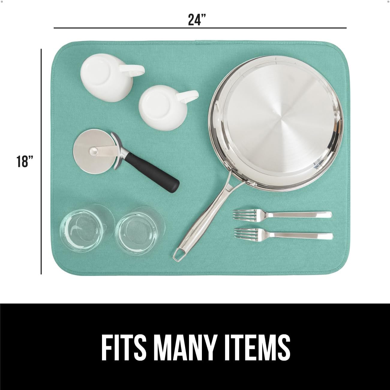 GORILLA GRIP Ultra Water Absorbent Microfiber Dish Drying Mat, 18x24, Quick Dry Thick Mesh, Slip Resistant Pad for Sink Dishes or Under Rack, Kitchen Counter Accessories, Machine Wash Mats, Mint