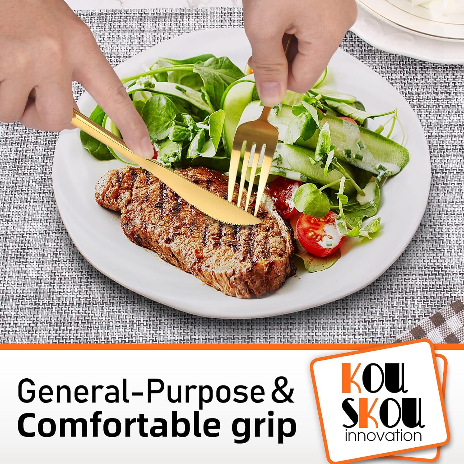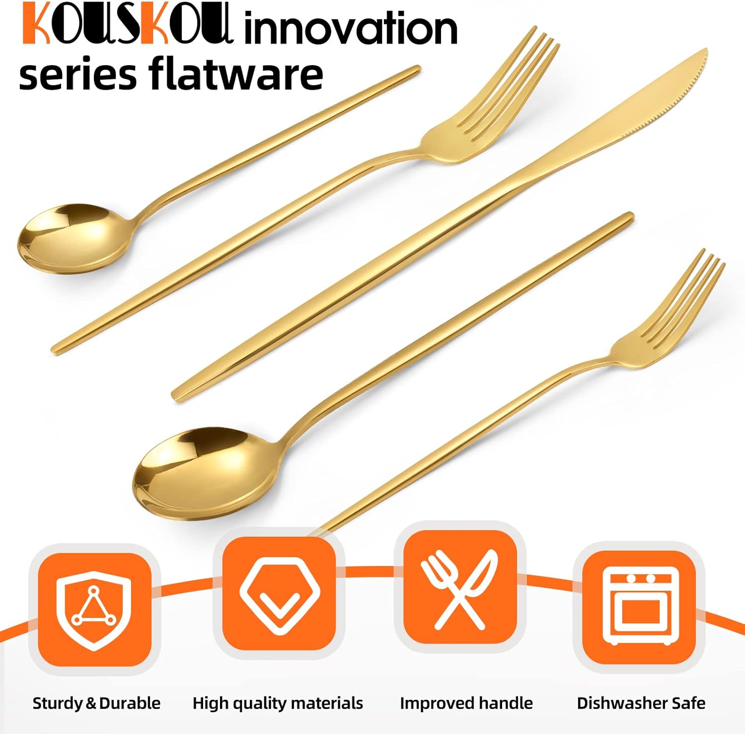 • Classic innovative design·The traditional stainless steel flatware with round spoon and handle is too heavy, and its advantage is just that it looks good and lacks practicality. KOUSKOU developed this product which has both good-looking and practical features.
