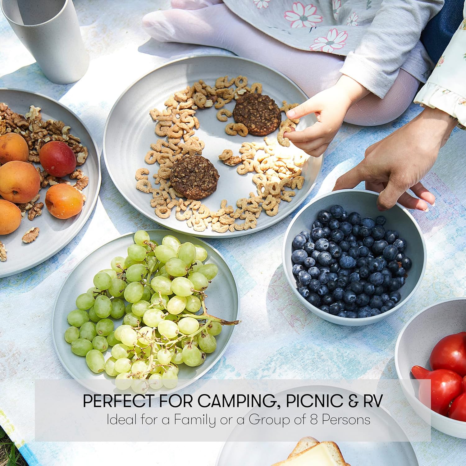 Wheat Straw Dinnerware Sets | Unbreakable Dinnerware Sets | Dishwasher Microwave Safe Dinnerware | Eco Friendly Non Breakable Dinnerware Sets | RV Outdoor Camping (Grey, Service for 8 (32 pcs))