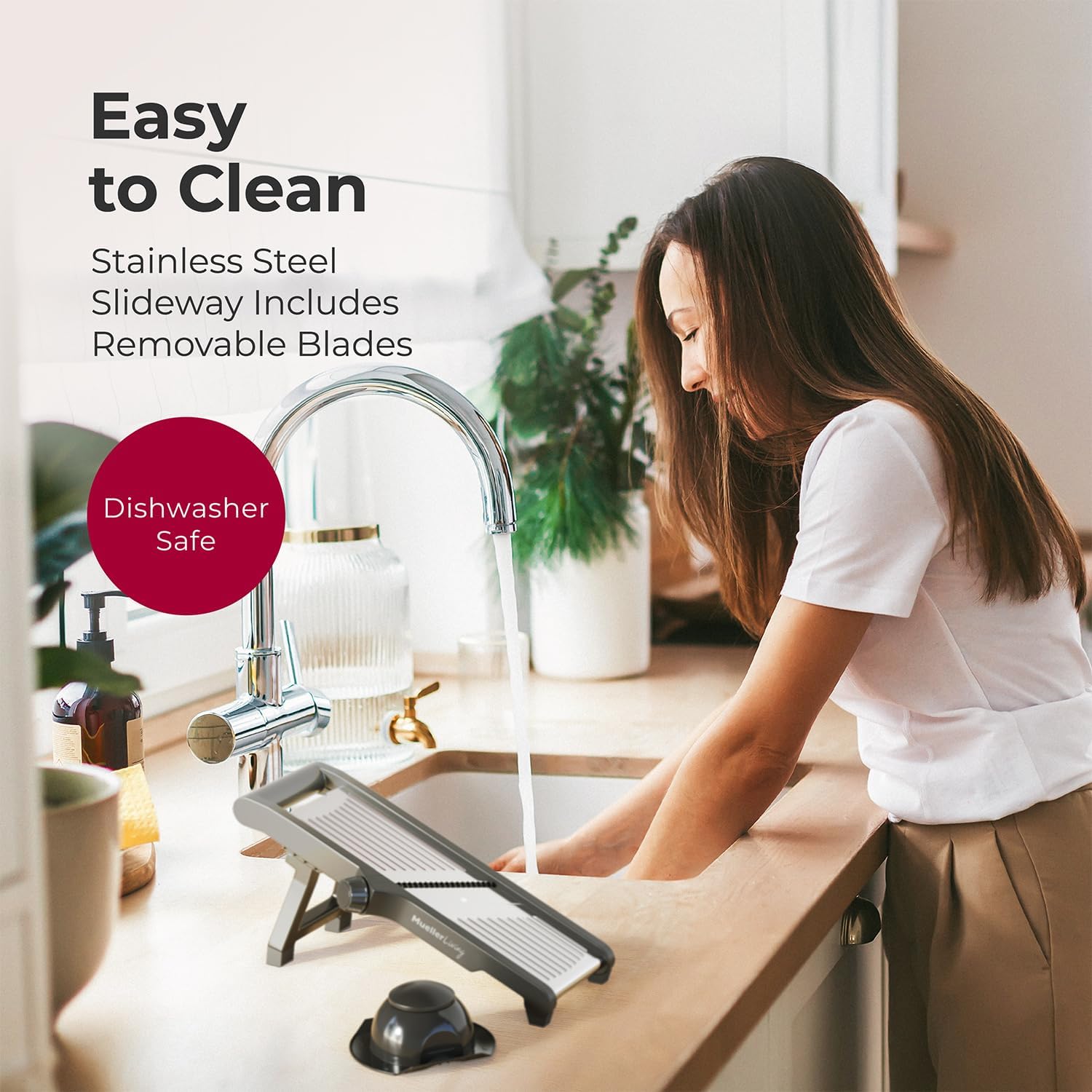 MuellerLiving Mandoline Slicer for Kitchen, Stainless Steel, Slice or Julienne, Vegetable Chopper, Fruit Slicer