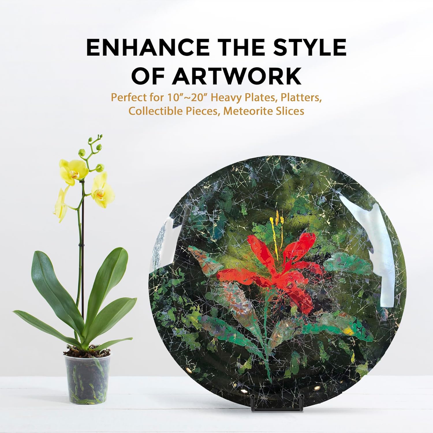 • CHOOSE YOUR LARGE STAND: - This 10 inch plate stand features a sturdy 2.5" deep lip, a 10° tilt angle, and a 4" widened design with a 5.3mm wire diameter, making it perfect for securely holding items ranging from 10" to 30" in size and up to 20 lbs in weight, such as heavy and thick plates, frames, and artwork. (3 Pack)