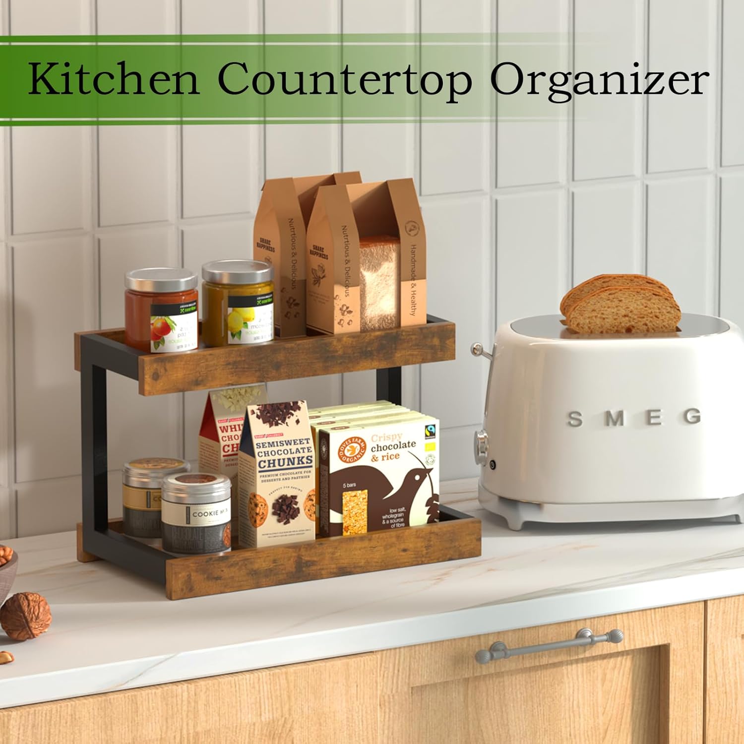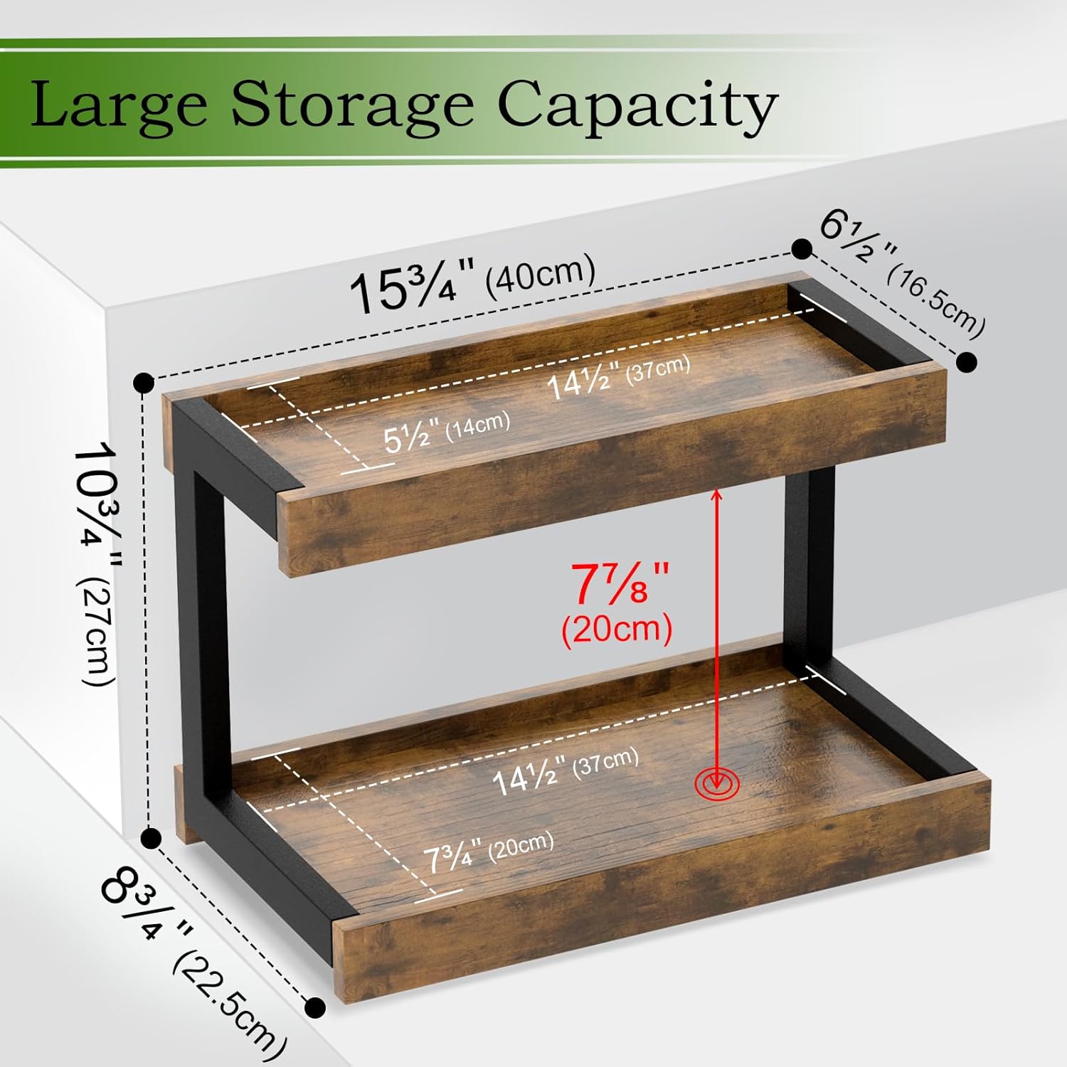 MARTY 2 Tier Spice Rack Organizer for Countertop, 15.8''L Coffee Station/Bathroom Organizer Countertop, Counter Shelf Desktop Storage Organizer for Kitchen, Bedroom, Office (Rustic Brown)