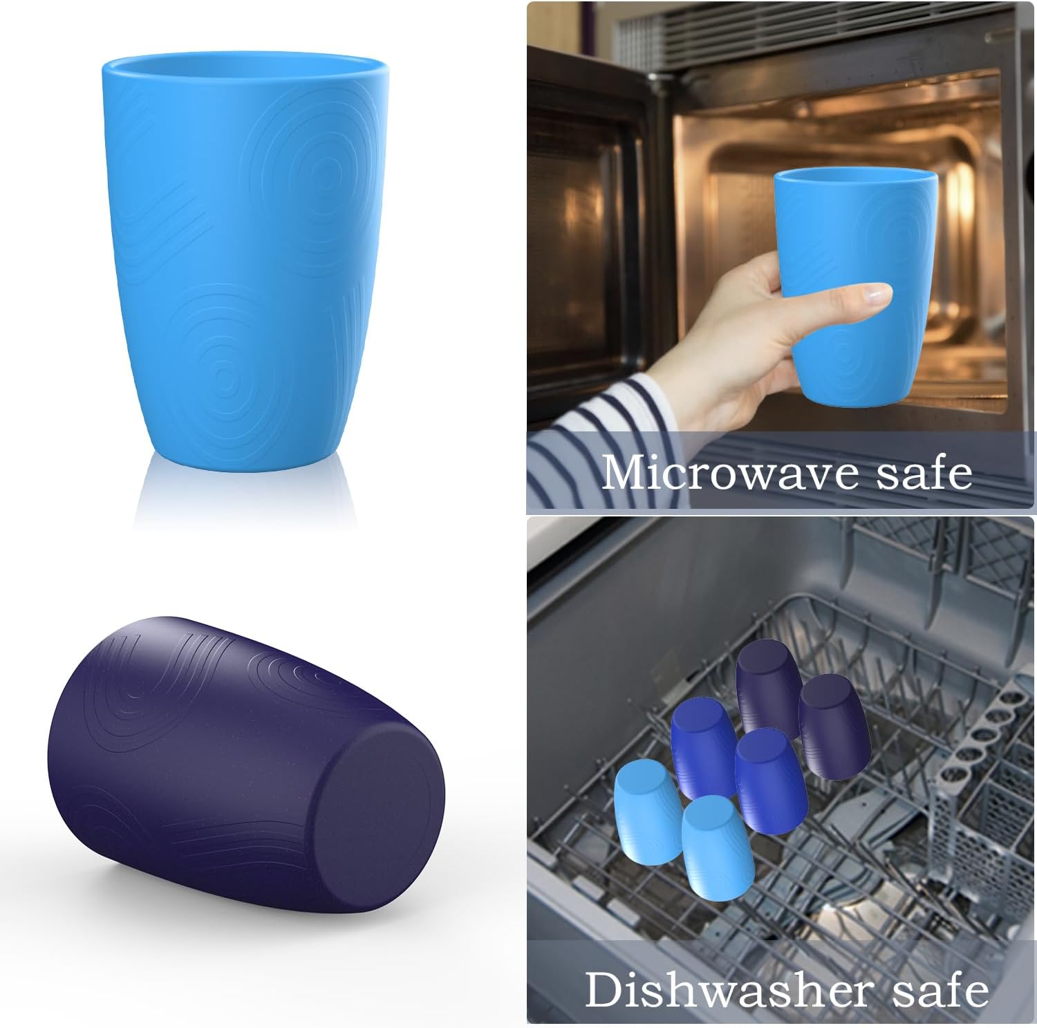 Homienly Glasses Drinking Set Premium Wheat Straw Cups Set of 6 Alternative to Plastic Cups Unbreakable Water Tumblers Reusable Cups for Kitchen Dishwasher Safe Water Glasses(12 OZ Blue Sky)