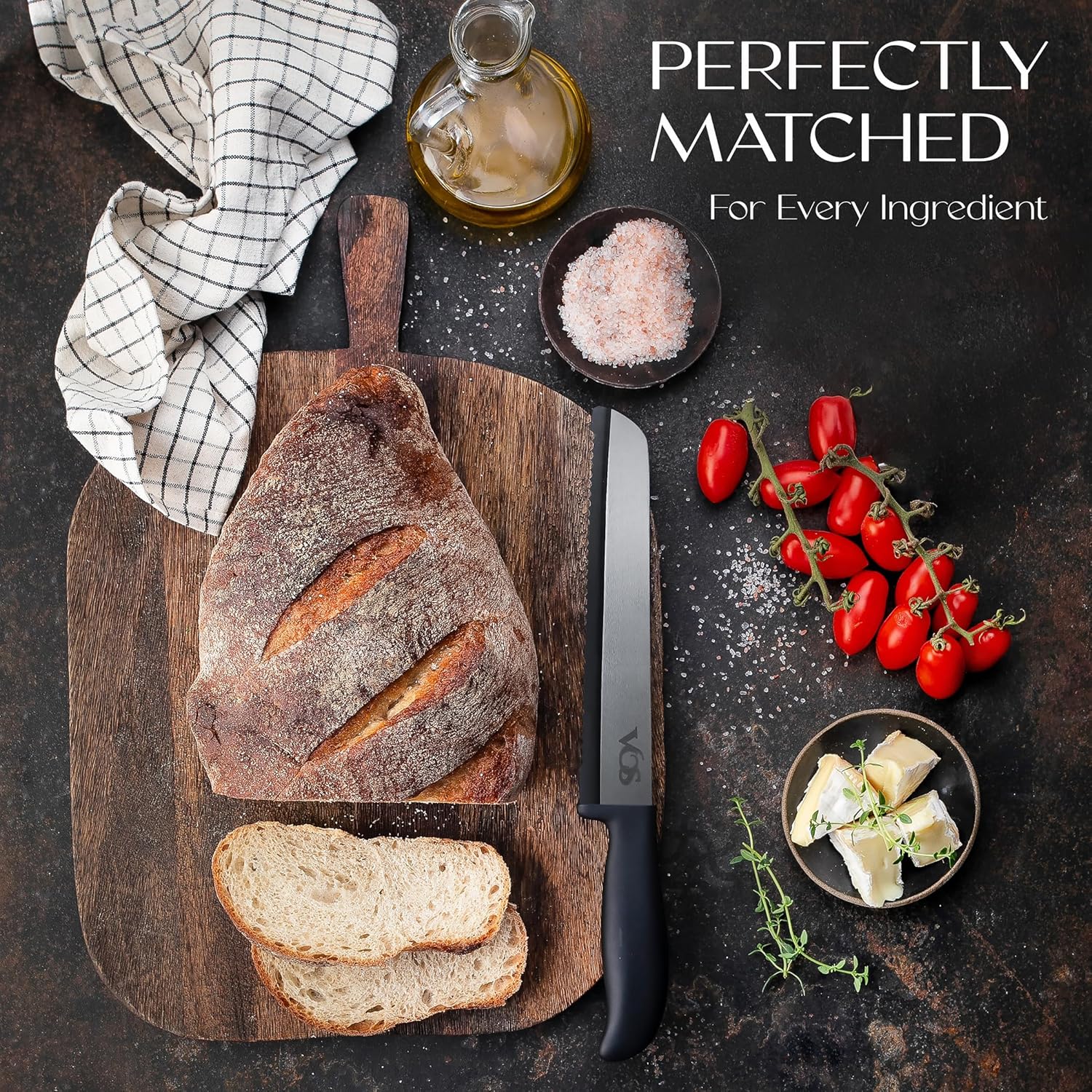 • Ultra-Sharp, Cuchillos para cocina, Rustproof Blades: Experience effortless slicing and dicing with Vos Ceramic knives, made from advanced zirconia ceramic material that stays sharper longer, never rusts, and is resistant to acids, oils, and odors.