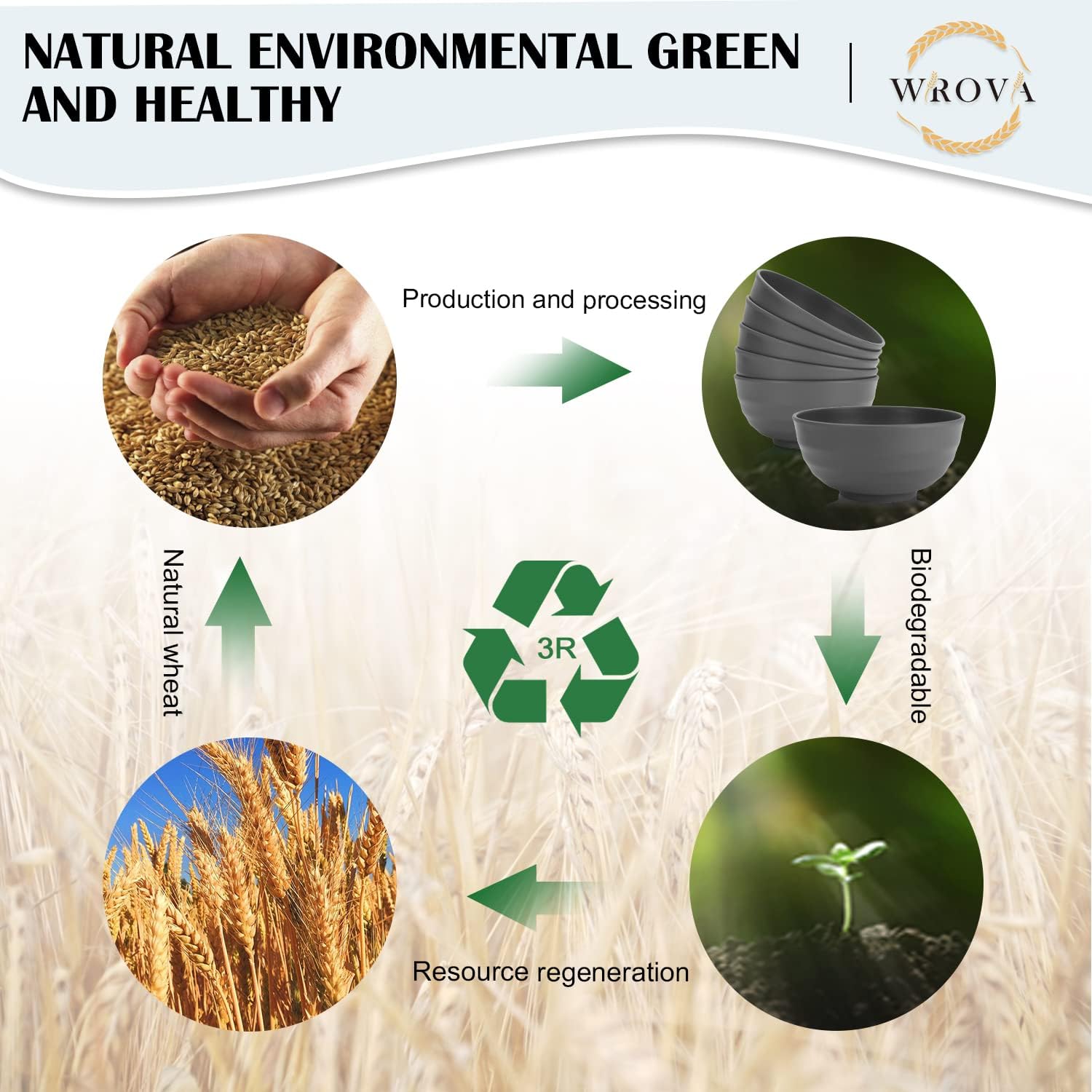 • 【Wheat Straw Materials】These bowls set is made of natural organic wheat straw fiber, the material is non-toxic,odorless.There is no plastics and harmful chemical materials.Very healthy and beautiful tableware for your family.