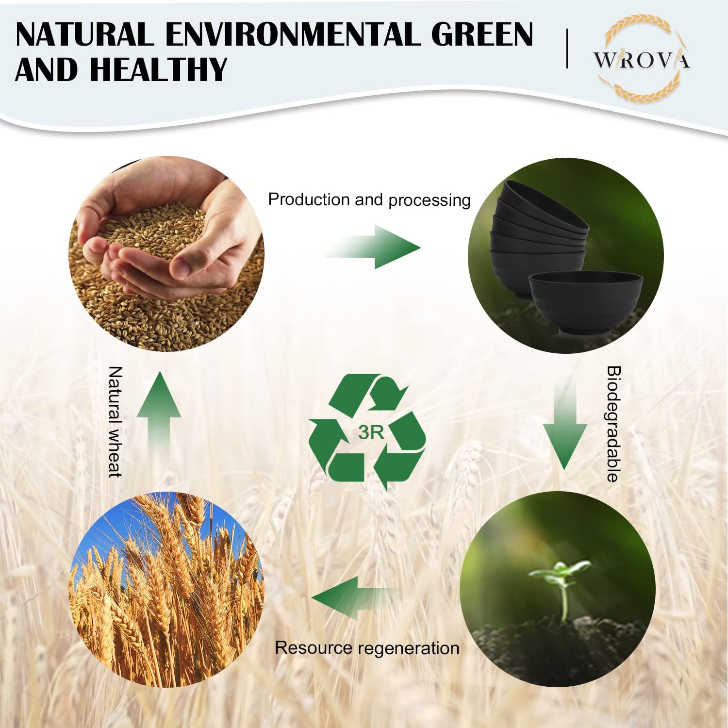 • 【Wheat Straw Materials】These bowls set is made of natural organic wheat straw fiber, the material is non-toxic,odorless.There is no plastics and harmful chemical materials.Very healthy and beautiful tableware for your family.