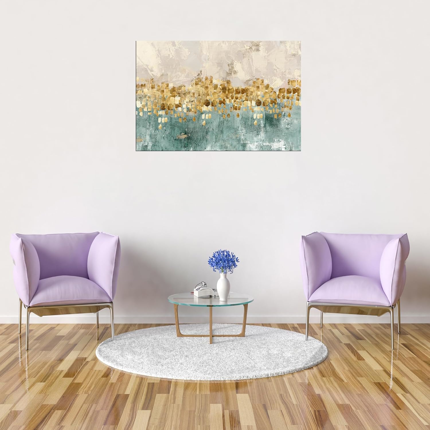 DZL Art A74681 Gold Abstract Painting Modern Decor Wall Art Gold Canvas Gray Contemporary Canvas Living Room Art 32.00'' x 48.00''