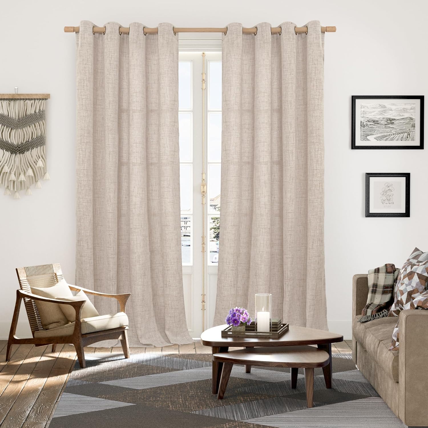 YoungsTex Extre Long Linen Curtains for Living Room 108 Inch Length, Bronze Grommet Natural Linen Textured Drapes Light Filtering for Bedroom, 2 Panel, 52 X 108 Inch