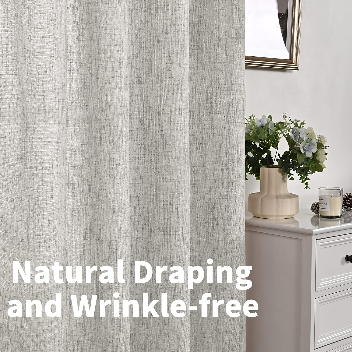 • Textured Linen Look: Our faux linen curtains are made from linen blend fabric with a premium soft touch, excellent drape and wrinkle-free. Natural and rustic look that adds warmth and texture to any room, suitable for the living room, bedroom, farmhouse, dining room, office and any style space.