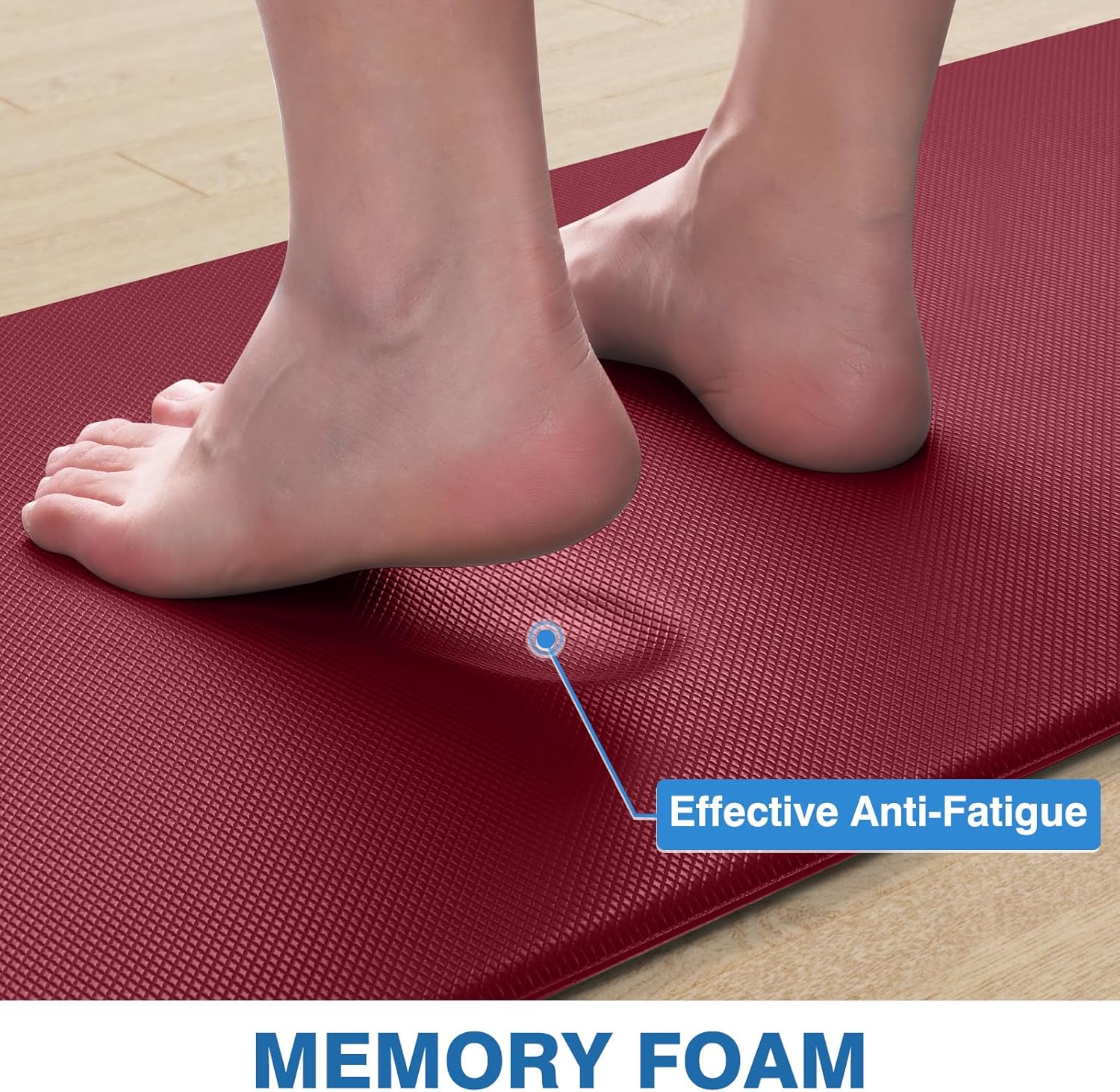 StepRite Kitchen Mats, 2PCS Kitchen Rugs, Cushioned Anti Fatigue Kitchen Mats for Floor, Non-Slip Standing Desk Mat, Waterproof Kitchen Rug Set for Kitchen, Floor, Office, 17.3"x30"+17.3"x47", Red