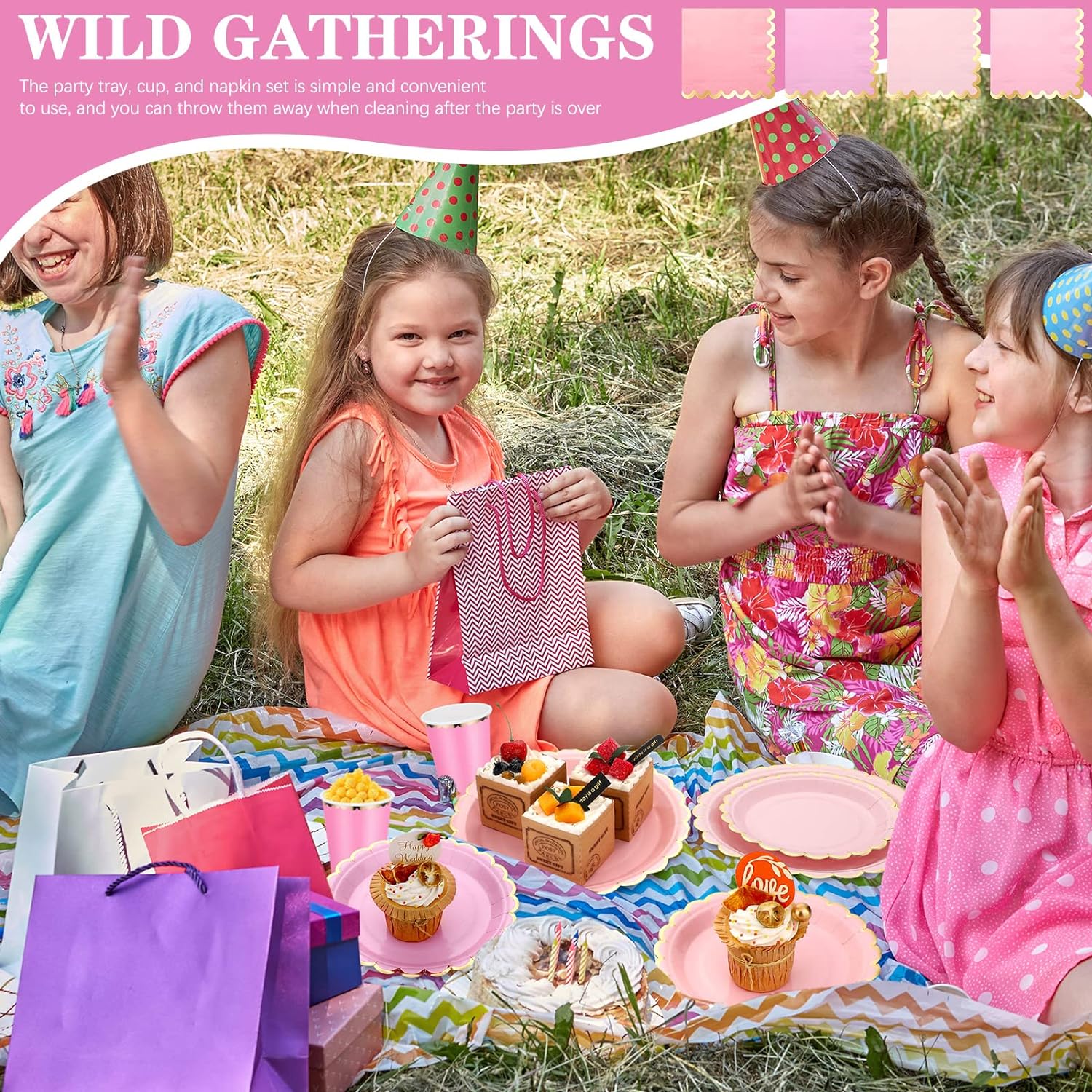 • Rich in Quantity: you will receive 24 pieces 9 inch pink paper plates, 24 pieces 7 inch pink paper plates, 24 pieces 9oz pink disposable cups and 24 pieces pink scalloped cocktail napkins, measuring approx. 13 x 13 inches, 24 sets of plastic cutlery including 24 forks, 24 spoons and 24 knives, enough quantity and nice combinations to meet your needs and replacements, can serve 24 guests