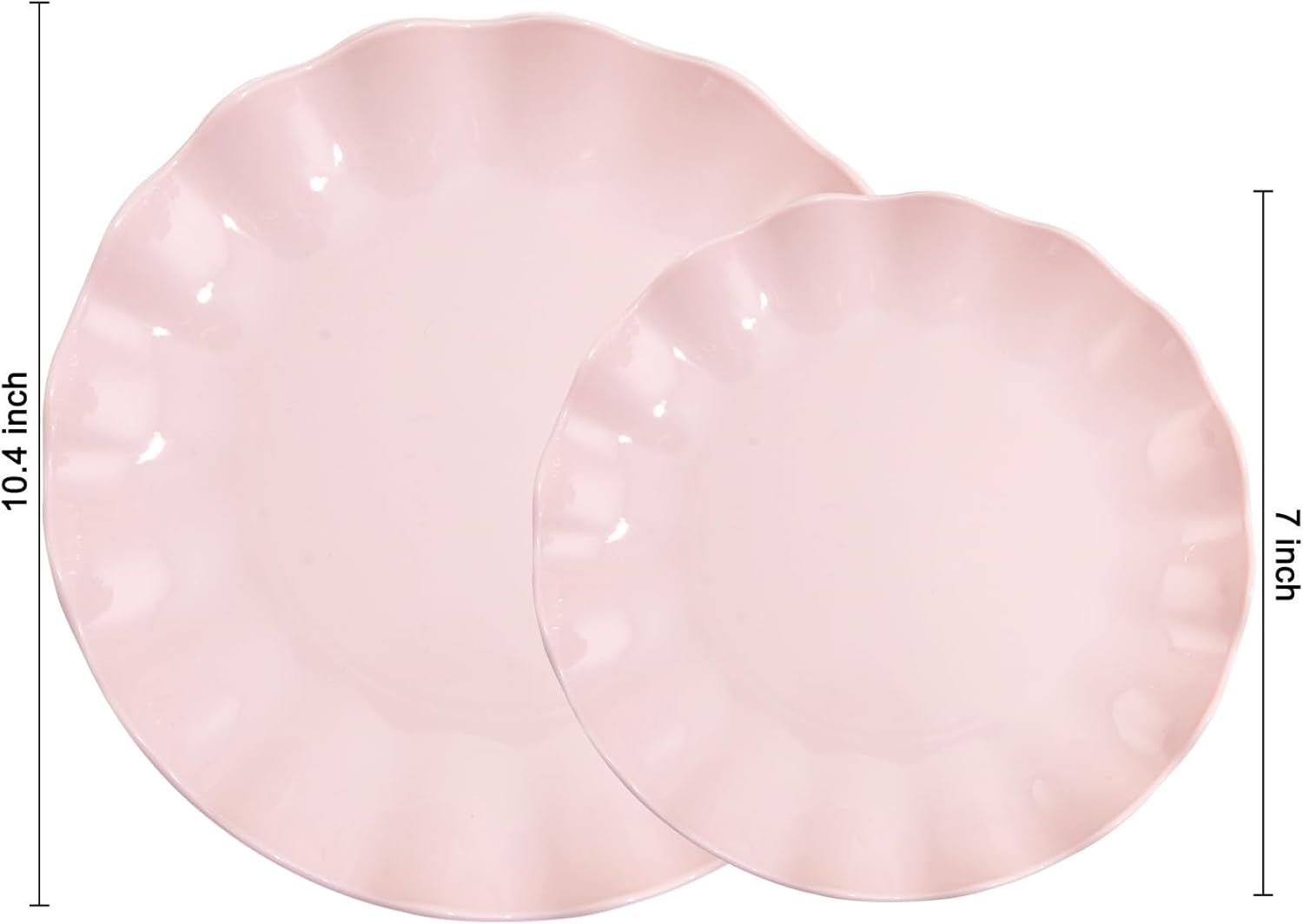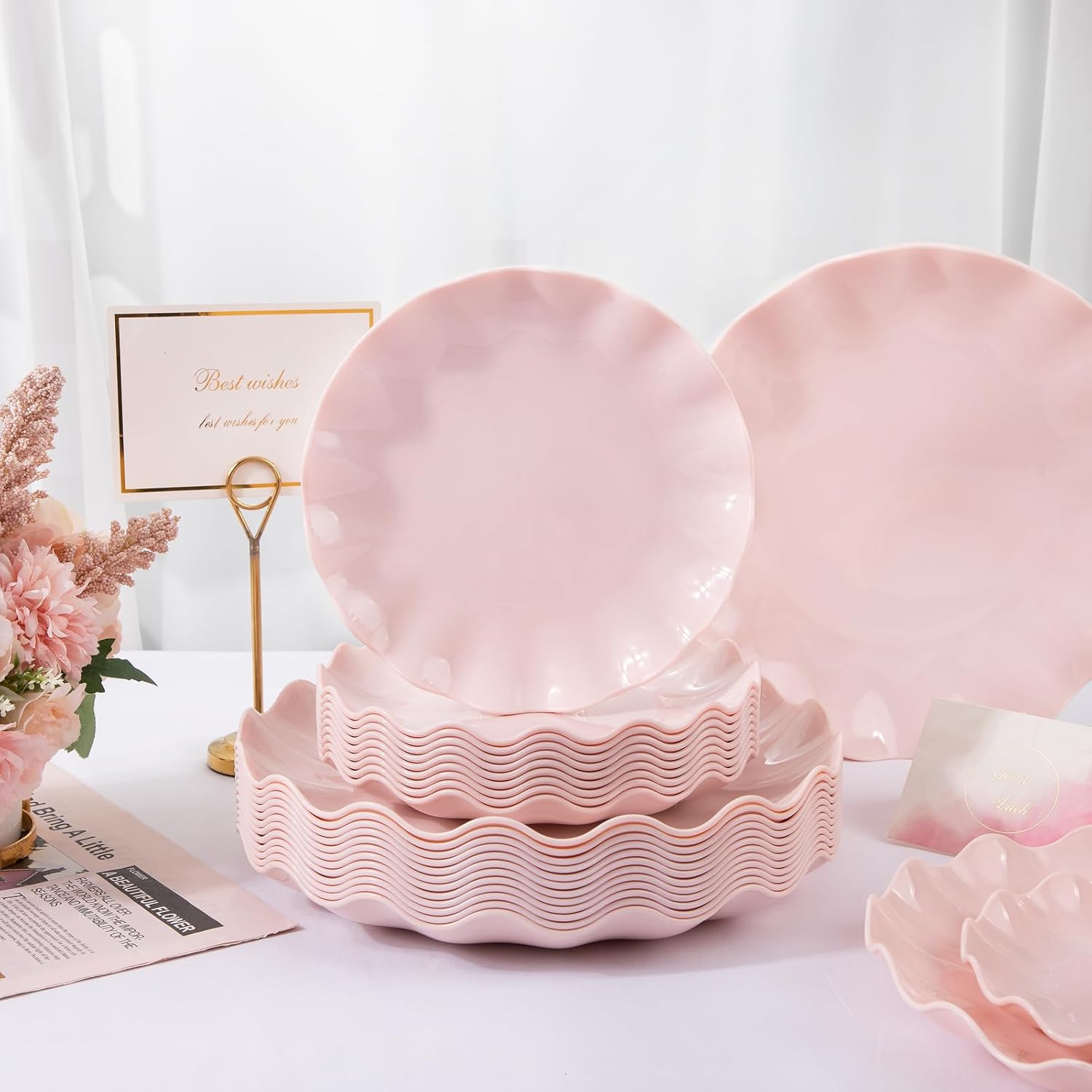 LIYH 24 Pcs Pink Plates Reusable, Pink Plastic Scalloped Plate Durable and Dishwasher Safe,Baby Shower Plate, Light Weight Daisy Plastic Wavy Plates for Wedding Party Birthday