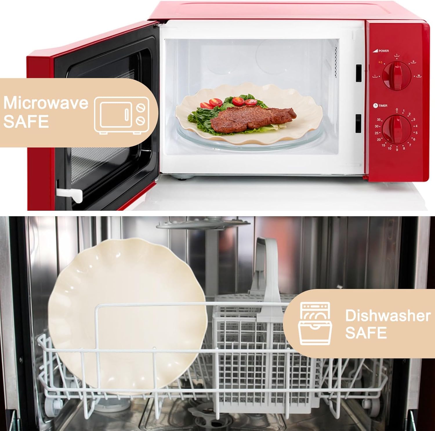 • Make dinner time easy with this microwave safe plastic plates set: This plastic reusable plates providing an elegant and practical solution for dinner time. These plates are microwave safe, allowing you to heat up leftovers or cook a quick meal with minimal fuss. They are also reusable, dishwasher safe, and unbreakable, making them ideal for families with kids.