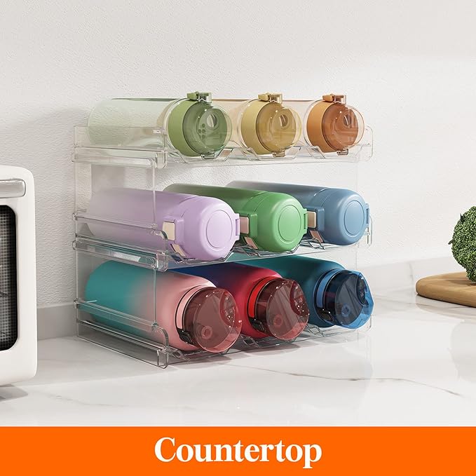 Lifewit Stackable Water Bottle Organizer for Cabinet, Water Bottle Holder, Kitchen Pantry Organization and Storage, Plastic Fridge Wine Racks, Tumbler Travel Mug Cup Holder, 3Pack, Hold 9 Bottles