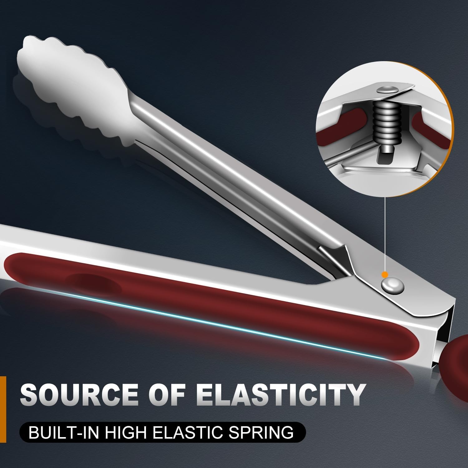 • ERGONOMIC HANDLE DESIGN AND HEAT RESISTANT: The handle is cushioned with silicon, good for thumb rest and ensures good grip and control. The metal tong head is super heat resistant. Easy to rinse, dishwasher safe.