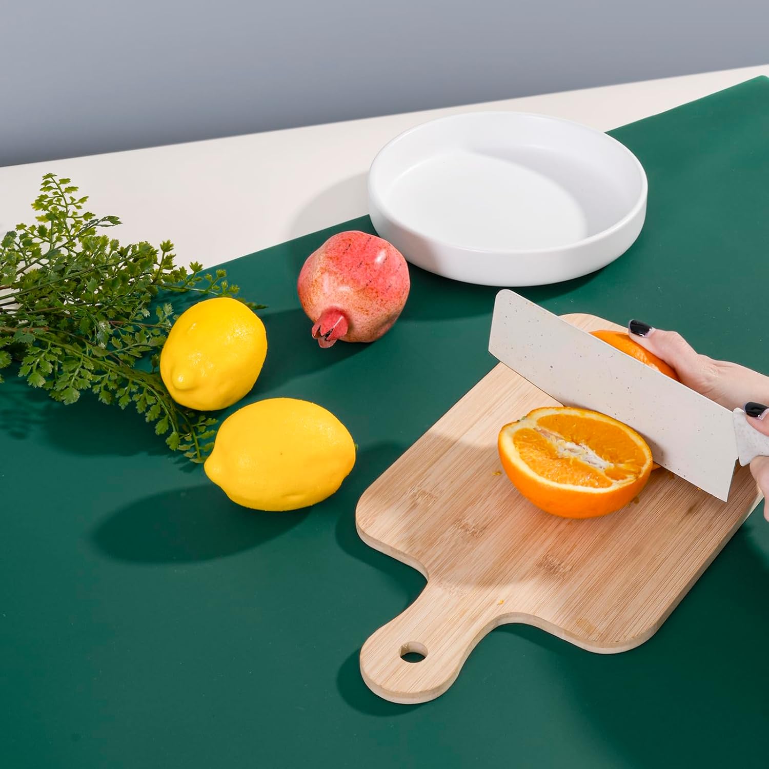 • Super Large Size : Silicone table mat of giant size - 36x24inch, large enough to effectively protcet your table from stains, spills, scratches, grease, heat, water, etc. Our extra large silicone counter mat can be cut to the desired size to fit countertops of different sizes and shapes.