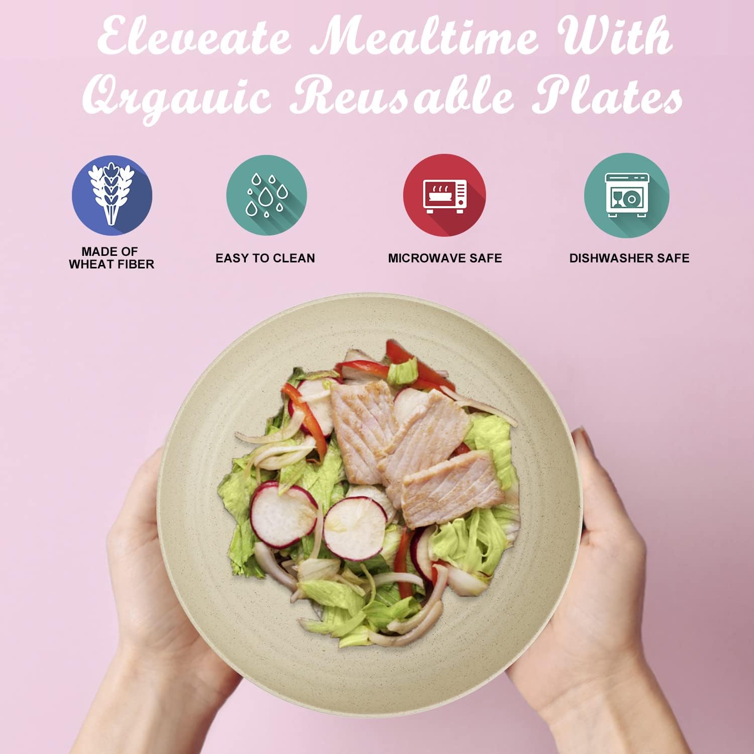 • 【𝐑𝐞𝐮𝐬𝐚𝐛𝐥𝐞 𝐏𝐥𝐚𝐭𝐞𝐬 & 𝐃𝐞𝐥𝐢𝐠𝐡𝐭𝐟𝐮𝐥 𝐂𝐨𝐥𝐨𝐫】- Colorful series of wheat straw plates have 4 different colors. Each color shows different happiness of our life. Additionally, kids will have fun with meal using colorful plates.