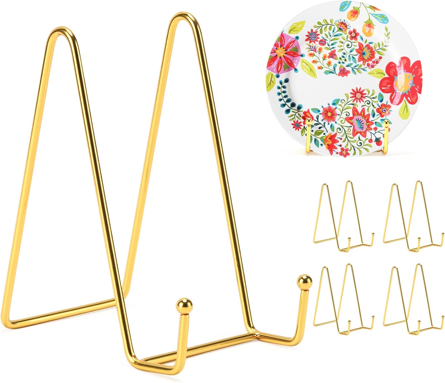 Kruodop 6 Inch Plate Stands for Display, 5 Pack Plate Holder Display Stand, Gold Metal Frame Easel Holder Stand for Pictures,Book, Photo, Decorative Plate
