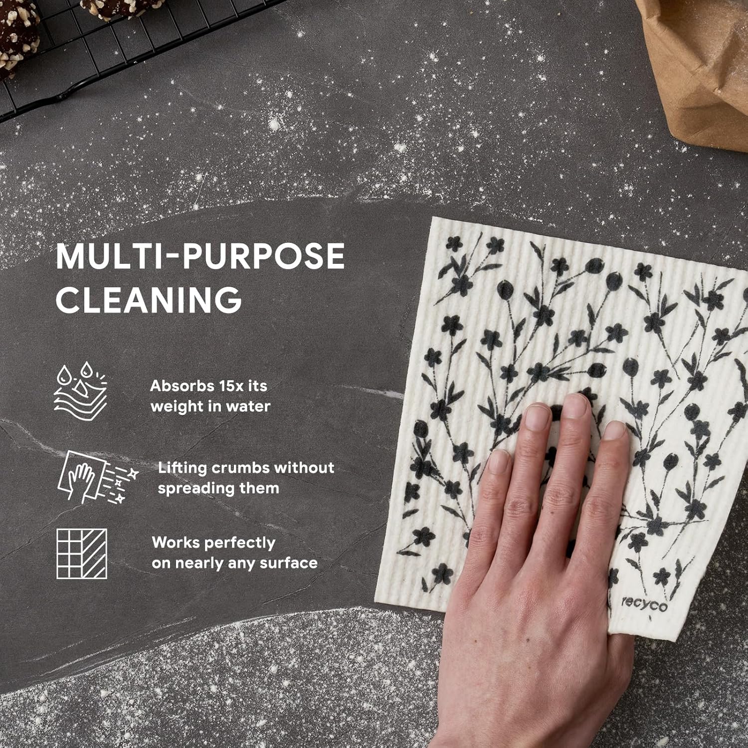 RECYCO Swedish Dishcloths for Kitchen | 5 Pack Geometric Washable Dish Rags | Cellulose Reusable Cleaning Paper Towels | Absorbent Counter Dish Cloth Sponge Kitchen Wipes, 8" L x 7" W