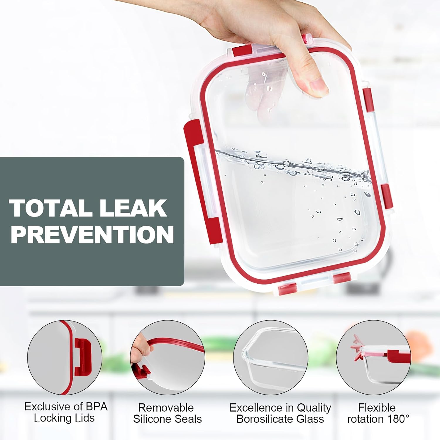 • AIRTIGHT LOCKING LIDS: VERONES airtight glass lunch containers use Exclusive of BPA snap-lock lids. Make sure there are no spills and leaks, keeping your food fresh, you will not have to put up with spilled soup or sauce staining your lunch containers again. The lid opens and closes easily and does not break or slowly stop working. Ovens, microwaves and dishwashers are not lid friendly, please remove the lid before heating food or washing