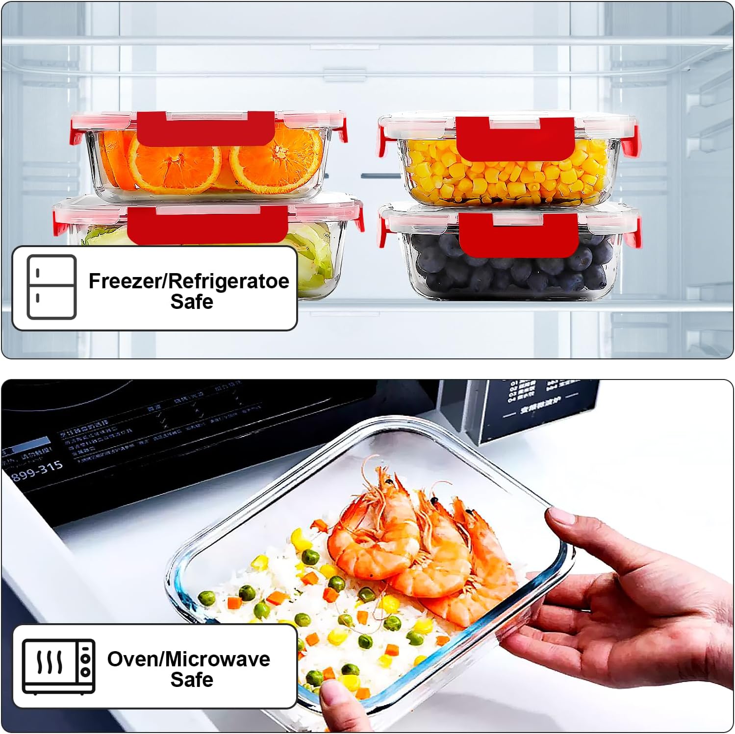 • GLASS MATERIAL EXCELLENCE IN QUALITY: Glass meal prep containers are made of high quality borosilicate glass, for oven, microwave, dishwasher and freezer. Stronger than cheaper glass food storage containers, food can be stored in glass containers directly after cooking. The containers are versatile to meet your everyday food storage needs, perfect for prep meals at home or whatever you need for the occasion