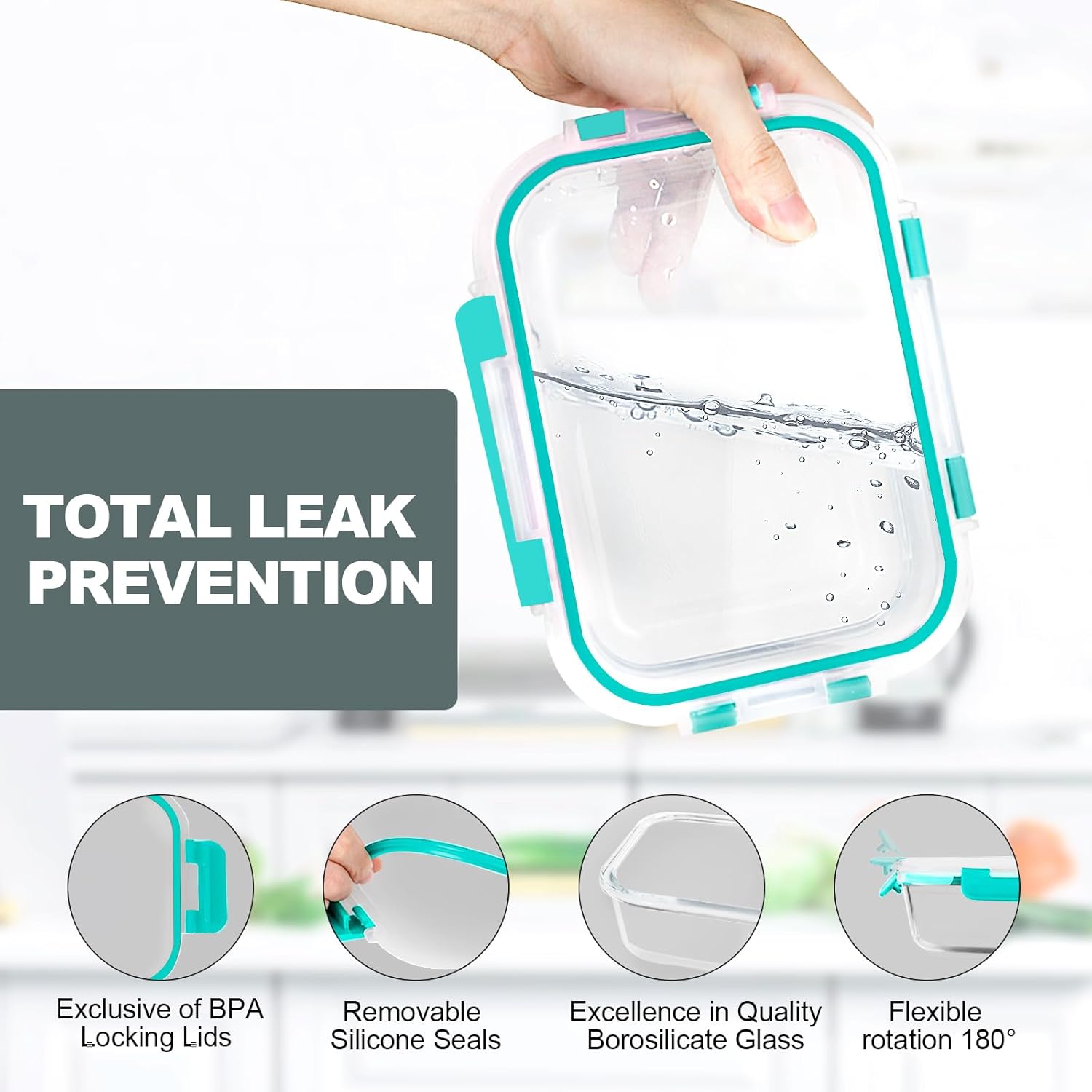 VERONES 10Pack Glass Meal Prep Containers, Airtight Glass Lunch Containers,Stackable Glass Food Storage Containers Set with Lids,Exclusive of BPA, for Microwave,Oven, Freezer&Dishwasher Friendly,Green