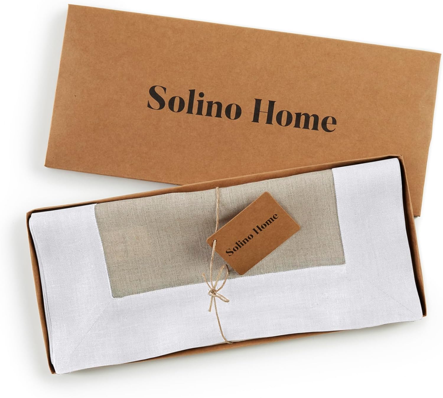 Solino Home Linen Table Runner 60 Inches - 100% Pure Linen White and Natural Short Table Runner 14 x 60 Inch Ideal for Dresser and Coffee Tables - Contempo - Thanksgiving, Holiday