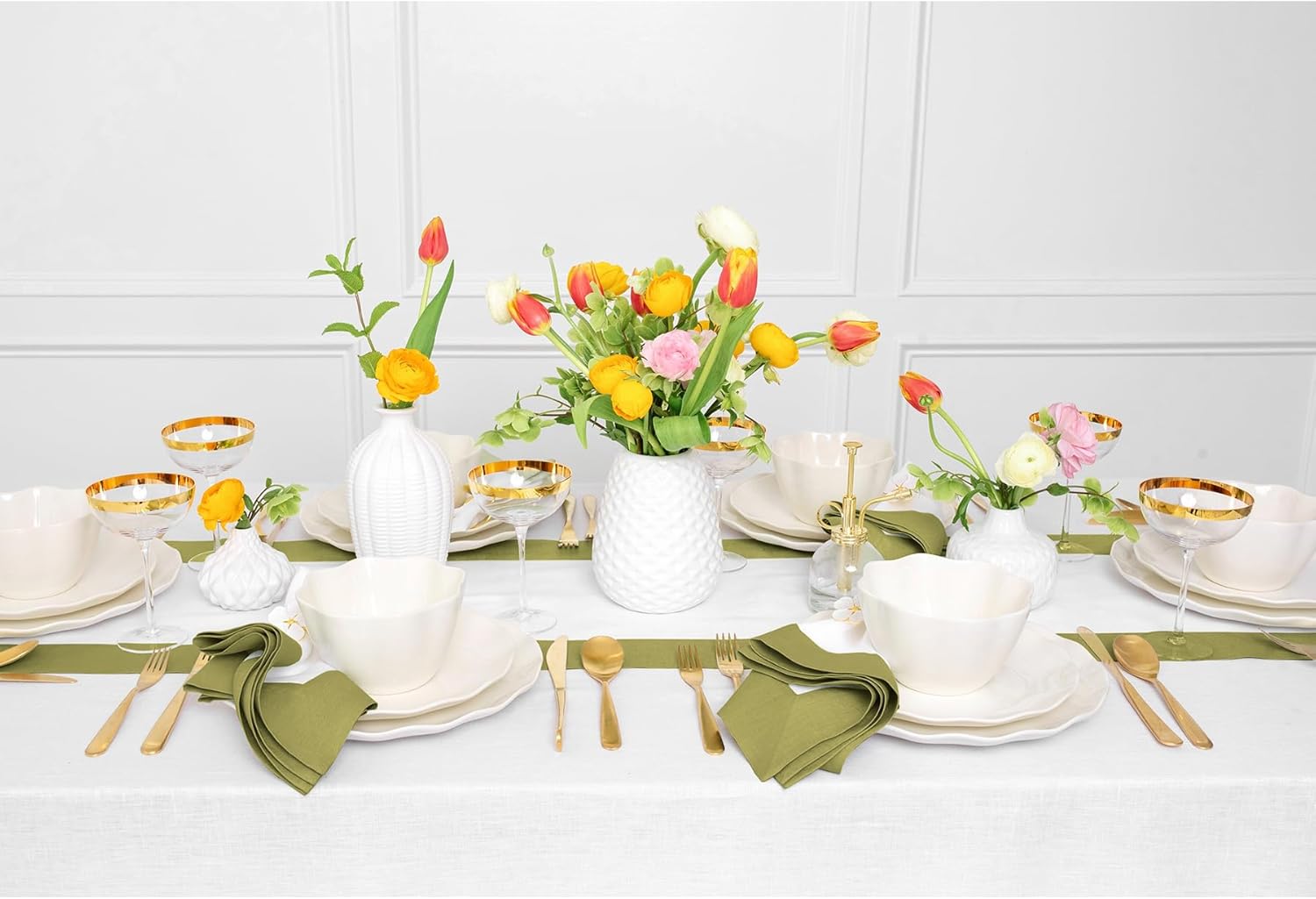 • 𝗖𝗼𝗺𝗽𝗼𝘀𝗶𝘁𝗶𝗼𝗻 𝗮𝗻𝗱 𝗖𝗿𝗮𝗳𝘁𝘀𝗺𝗮𝗻𝘀𝗵𝗶𝗽 : 100% Pure European Flax Linen Avocado and White Thanksgiving Table Runner - 𝗖𝗼𝗻𝘁𝗲𝗺𝗽𝗼 | Handcrafted By Skilled Artisans.
