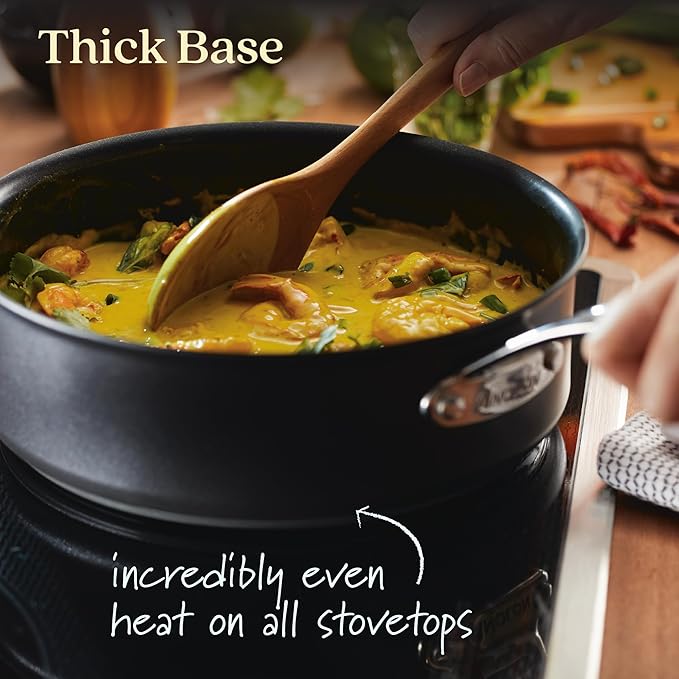 • INNOVATIVE BASE: Hybrid nonstick saute pan features a thick, uniquely constructed stainless steel base that delivers incredibly even heat on any cooktop, including induction