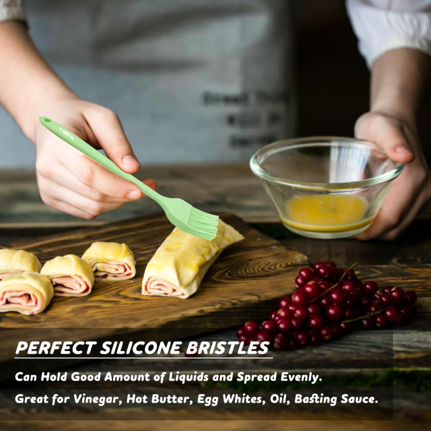 • ★ Upgraded ONE-PIECE DESIGN & STAINLESS STEEL CORE TECHNOLOGY - Walfos basting pastry brush,Owing to ONE-PIECE design, the silicone bristles will not break or shed in your food, unlike other bristle brushes. No bacteria will be stuck in the silicone basting brush and keep your food safe. The handle built with internal steel core results in a solid durability to our basting oil brush, it is also long enough to get a firm grip, never break and rust.