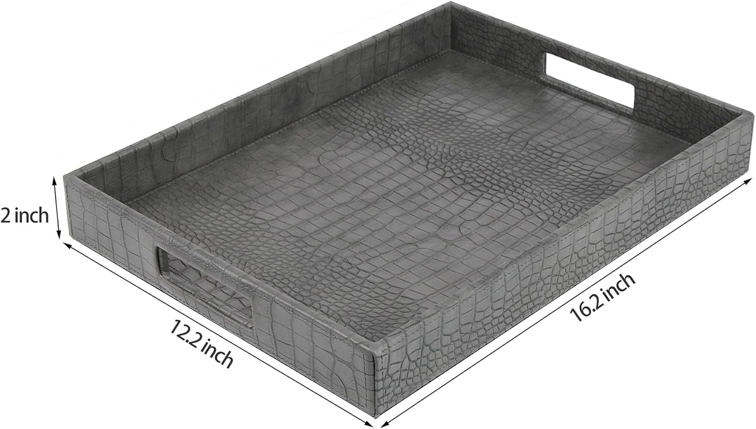 • This tray organizer is made of elegant pu leather, mdf, velvet, and the dimension: 16.2 x 12.2 x 2 inches.Perfect size for as serving tray, decorative tray and more