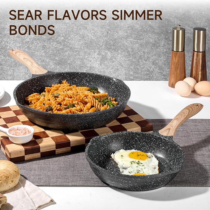 • Nonstick & Health: JEETEE nonstick frying pans with granite stone coating, which is PFOA free, safe & healthy. Require less oil or butter for cooking and minimal scrubbing for a spotless clean, giving you a healthier and more enjoyable at-home cooking experience