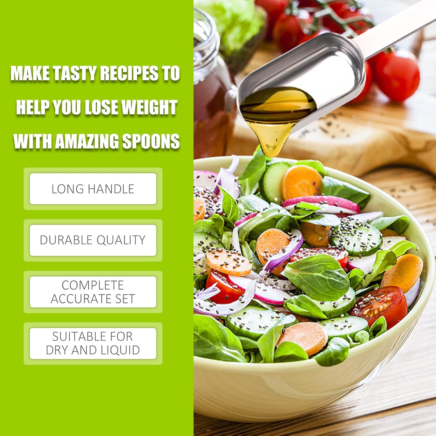 • 【Make Life Better】We know how important a good stainless measuring spoons is to enhance the cooking experience. We have made a lot of efforts and attempts to come up with a product that we are proud of. We are confident that the long handle measuring spoons will live up to your expectations